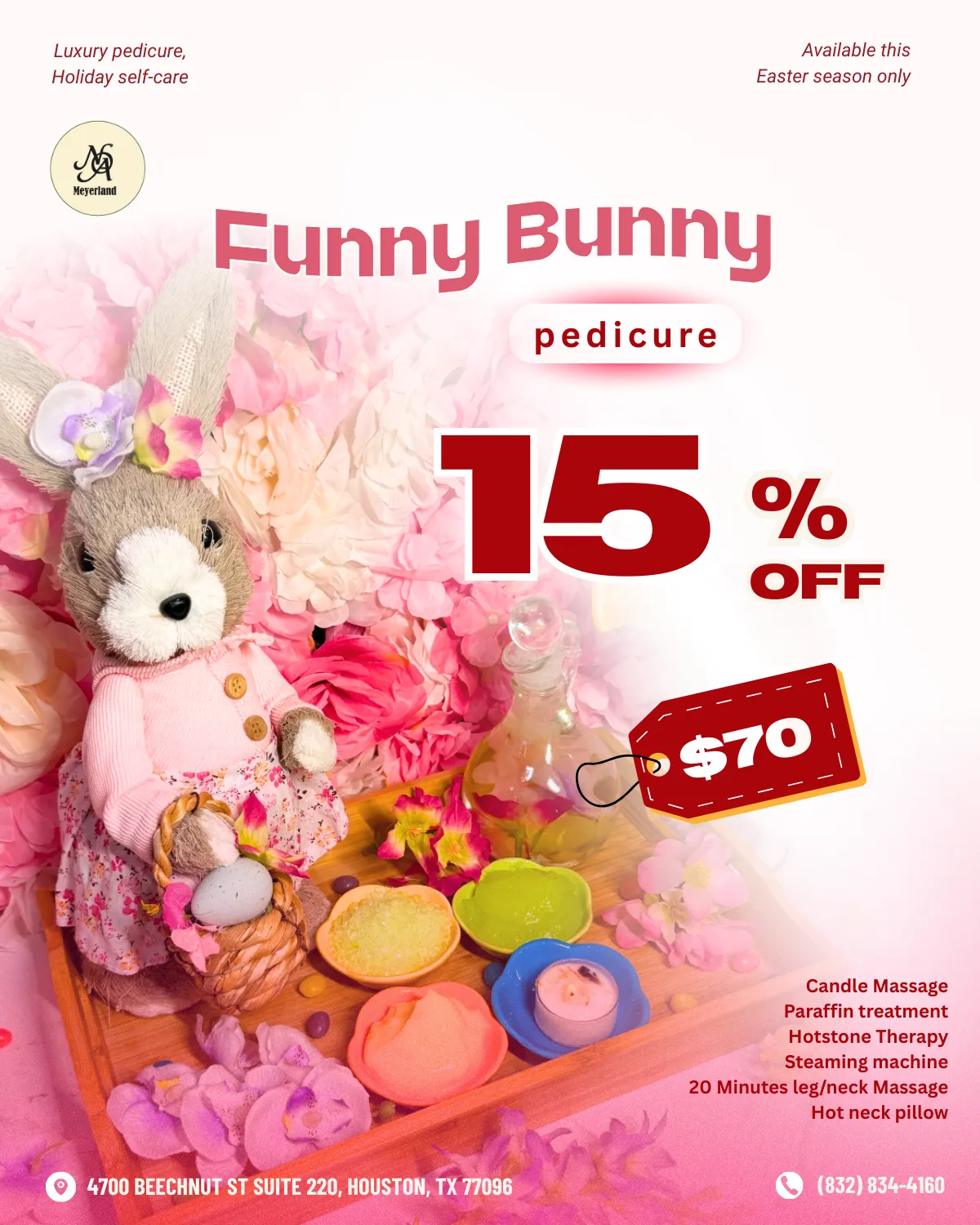 Enjoy our 15% OFF Funny Bunny Pedicure β now $70 for a limited time this Easter season only!!